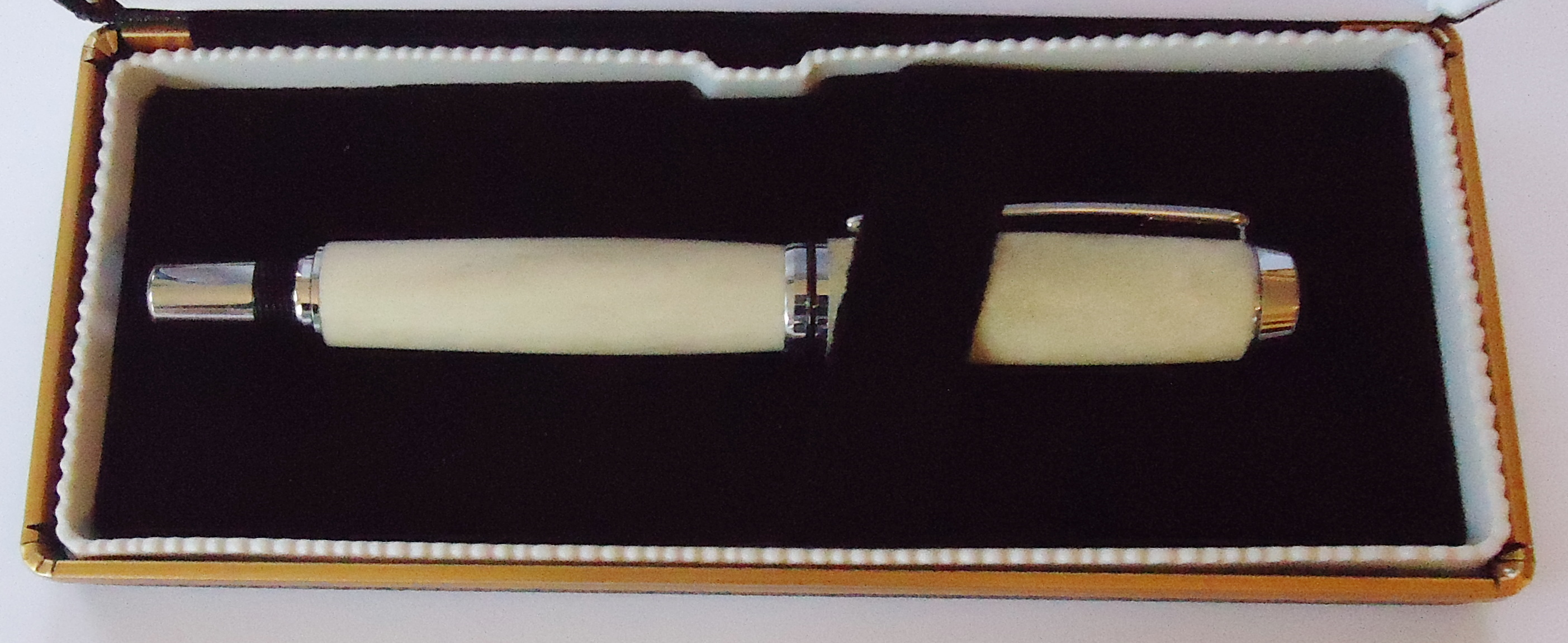 Moose Baron Fountain with medium nib, case included $80 Please Call to Order 207-659-5104 Moose Baron Roller Ball, case included $80 Please Call to Order 207-659-5104 Pen closed with case |