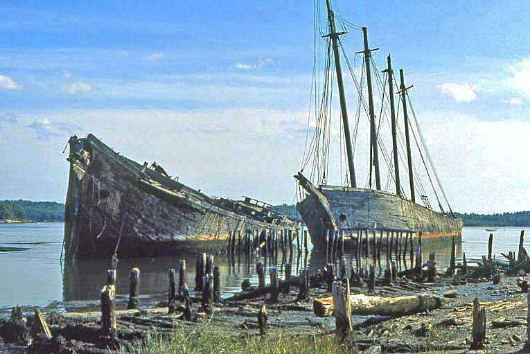 In June of 1932 the four-mast schooners Hesper and Luther Little were auctioned off and both have been "laid up" in Wiscasset ever since. The ships were in good condition at the time, but the age of sail was near an end and no work could be found. The ships have been deteriorating until their removal became necessary. The Hesper and Luther Little were removed from the Sheepscot River during the summer of 1998. I am using wood from the ships to make these refillable pens. During the removal the wood from each ship was mixed thus the pens are from one ship or the other, but I do not know which! The old ships are gone now but these pens keep the memories alive. |